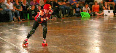 L: I think that their main jammers have been jamming all summer. That helps tremendoulsy. I haven't been jamming all summer, I've been blocking on travel team. Not taking anything away from their jammers, but that really makes a huge difference on my end. That last jam, I had the wind knocked out of me, and I had nothing left when I got up. They had better endurance than our jammers did, but that's something we can fix.