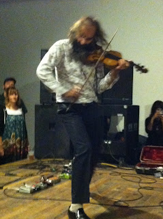 It's been nearly a decade since Australia's explosive three piece Dirty Three has graced us with their presence here in Detroit, and seven years since their last release as a trio. On their recent minimal nine city tour of the USA promoting their newest release on Drag City Records, "Toward The Low Sun", they mindfully chose Detroit City as one of their stops. Violinist and frontman Warren Ellis spoke quite fondly of their memories playing here in past years as well as a serious interest in our rich musical history, during one of his 5 minute rants between songs. I personally enjoyed the verbal interaction with the audience, while other people found it to be a slight annoyance. I found it to be endearing and authentic, personal and engaging. Although his sarcasm bit towards other bands, which I won't mention who, was perhaps unnecessary. All three members of this trio had such a different stage presence. Ellis with his intensely wild movements, stomping the ground with his feet, and random kicks into the air, all while playing the violin with such fervor. Mick Turner who played electric guitar, also had a strong presence, but seemed to be hyper focused creating his landscape of dreamy to hard chord sounds, while mostly staying in one place on the stage. Then there's percussionist Jim White. Enthralling. The relationship he has with his drums is so beautiful to watch. It's literally as though he's in another time and space, yet very present, and his fluidity of movement while he plays looks as though he's dancing with his trap set. One of my favorite percussionists, by far.