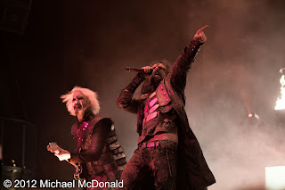 But the big guns came last, with terror master Rob Zombie storming forth for his set from a giant mechanical creature, harking back to the days when metal bands put on a true kick ass stage show. The stage adorned with multiple video screens playing clips of horror movies, anime, and gratuitous naked heaving breasts, the band launched in to a full on assault on the senses. Fire, flames, smoke, twenty foot tall robots, fireworks, bouncing beach balls, confetti, you name it, they pulled it out of their ass. Easily one of the best produced stage shows I've witnessed this year, I'd even go as far to say that Rob Zombie and crew blew away my favorite stage act, the veterans Iron Maiden. Rob Zombie knows how to put a show together, and witnessing this set was almost as good as being on the set of a live horror picture filming. It was an engaging and phenomenal production, one that I am glad to have been party to witness. Get your asses out to this tour and see it for yourself, you won't be disappointed!